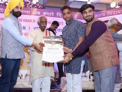 Bhuvnesh Vyas, a student of Subodh Law College, was honoured with the “International Life Saver Award” by the Honourable Governor of Haryana, Shri Bhandaru Dattatreya.