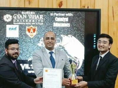 Yash Sharma from I Semester successfully secured first position, Tanmay Sharma from I Semester secured 1st Runner up position, and Aseem Simlote from I Semester secured 2nd Runner up position in Youth Fest Devil’s Advocate competition, organised by Gyan Vihar University on March 07, 2022.