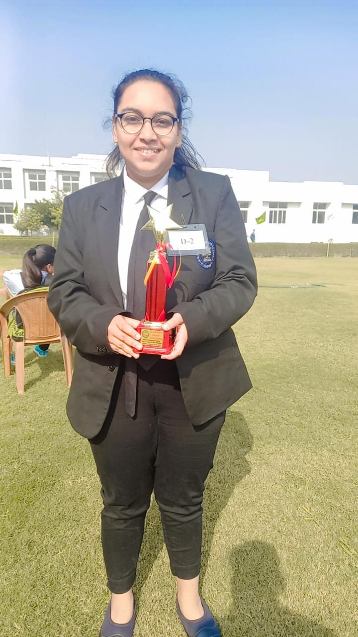 Nidhi Dadhich of III semester stood as the Best Speaker for Against the motion out of 86 teams in the Parley 2.0 National Debate Competition, organized by Rajasthan School of Law for Women, Jaipur on 30-31st May, 2022.