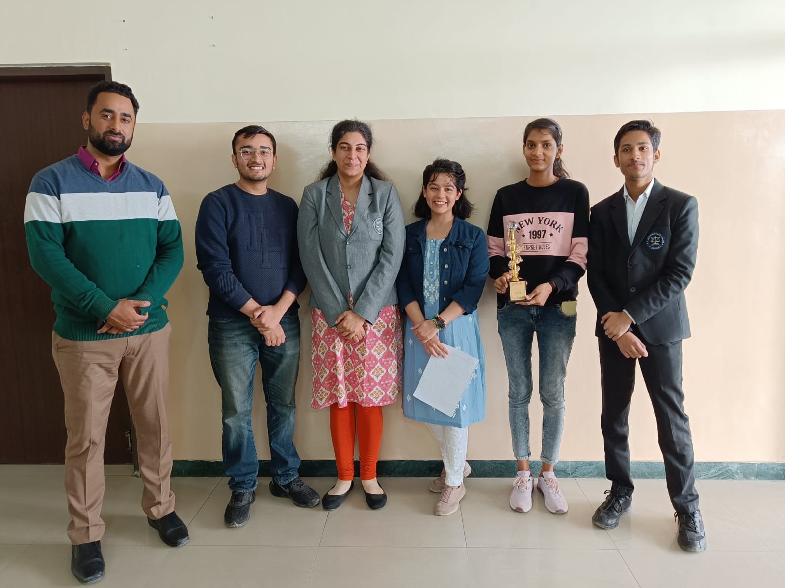 Best Mooter Award recieved by Ist Semester Student MananPreet Abooveja in National Moot Court Competition Organized by St. Wilfred's Law College, Jaipur