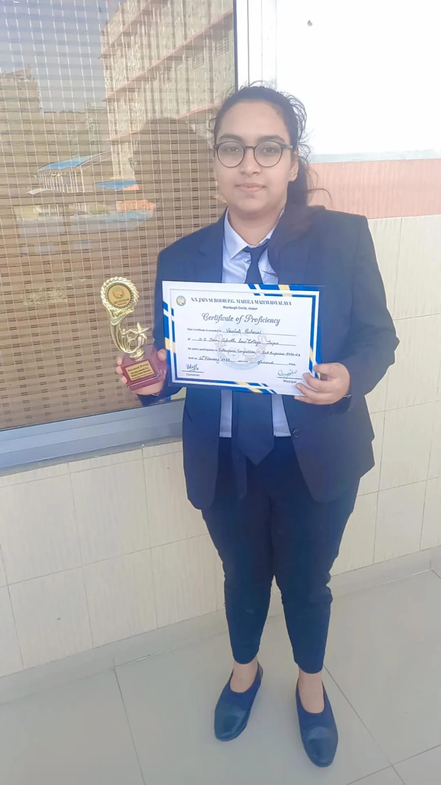 Vaishali Pachauri, Semester I, Secured II Position in the Debate Competition organized by S.S. Jain Subodh College of Global Excellence, December,2022