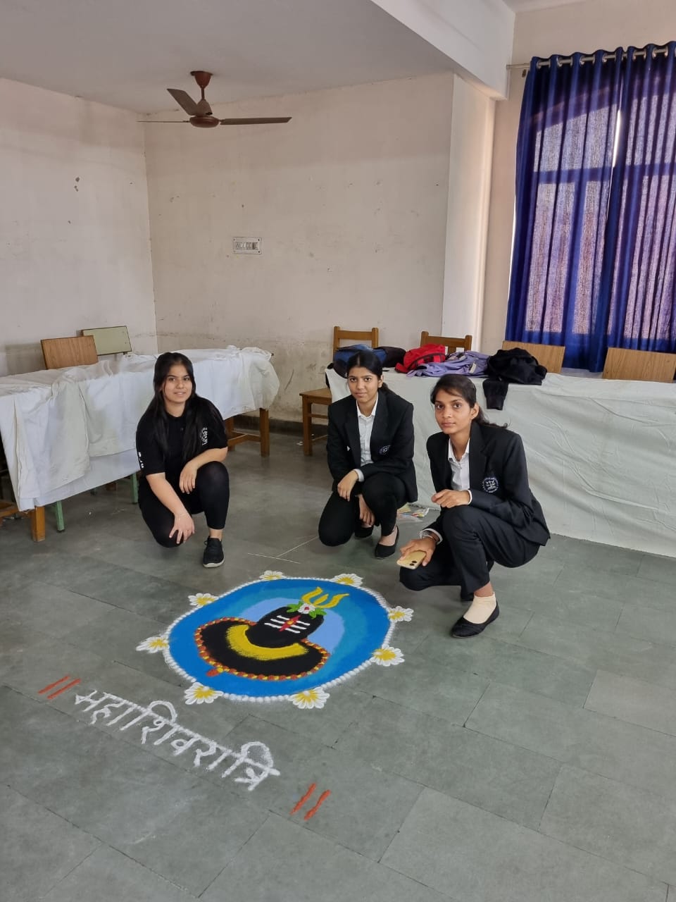 Khushi Pursahani, Kirti and Prachi Chaudhary Students of Semester 1st Secured Second Position in event "Abhiyuday" (Rangoli Making Competition) Orgainised by Stani Memorial P.G. College, 13th to 16th February, 2023.