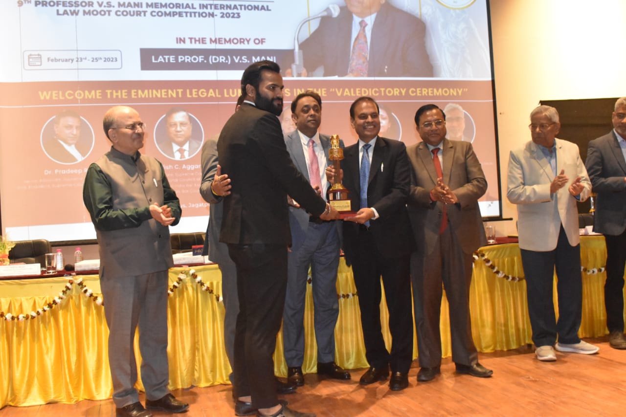 Our Student Deepanshu Soral of the LL.B. II Year Won The Best Mooter Award in a Renowned and Prestigious Moot-Court Competition , The "Prof. V.S. Mani Memorial International Law Moot Court Competition 2023" Organized By Jaipur National University, Jaipur