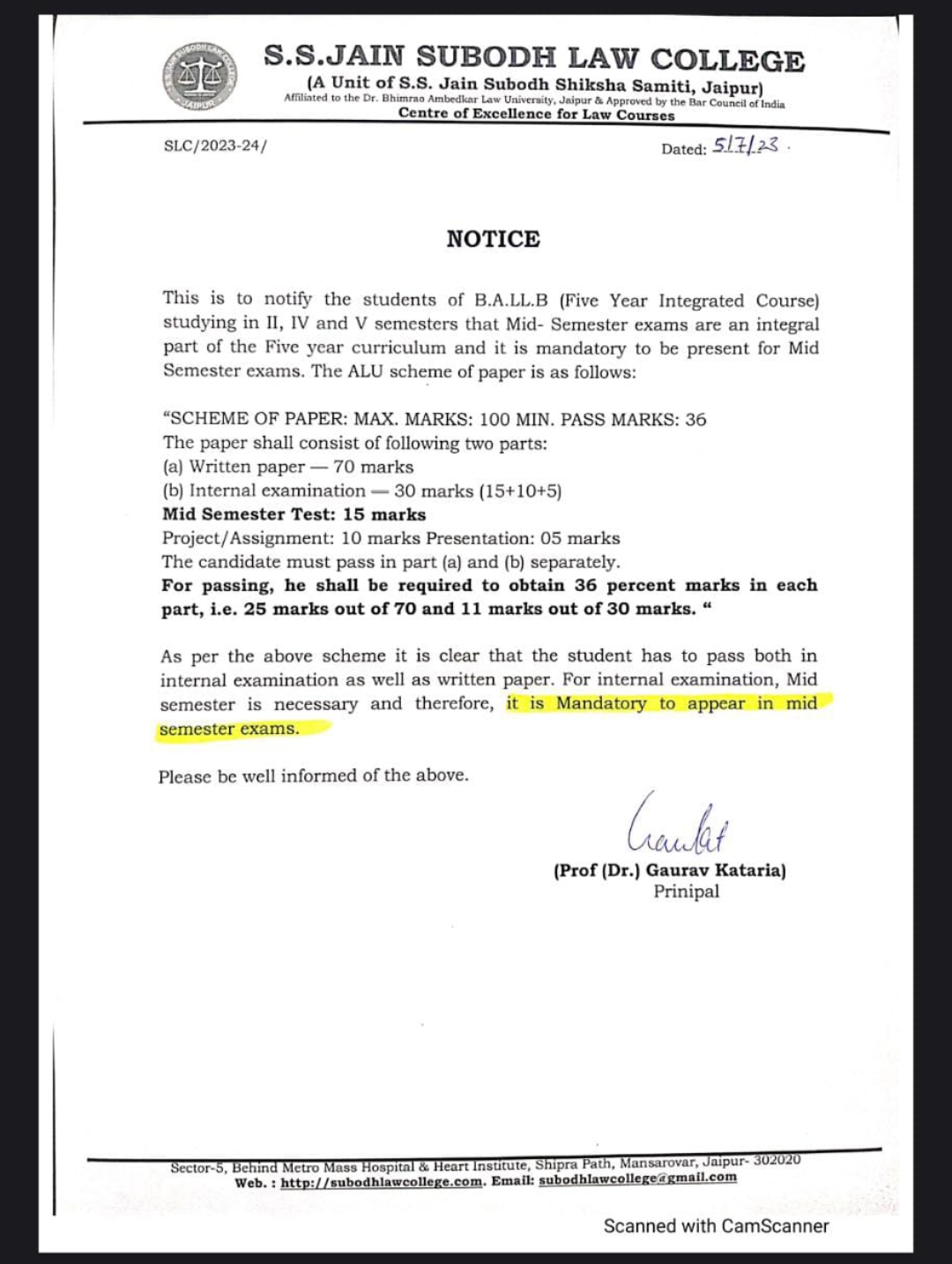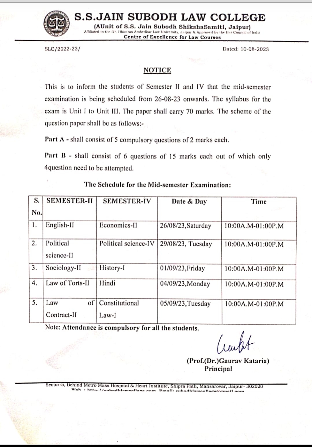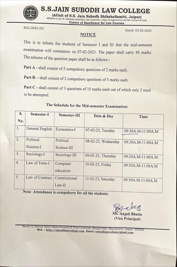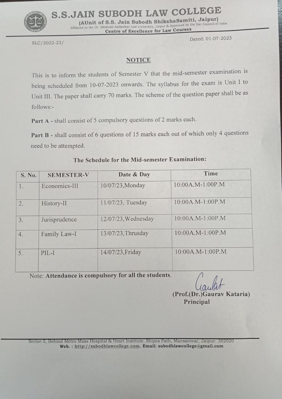 B.A.LL.B I & III semester Mid-term examination 2023 notice B.A.LL.B I & III semester(Five year) Mid-term examination 2023 notice