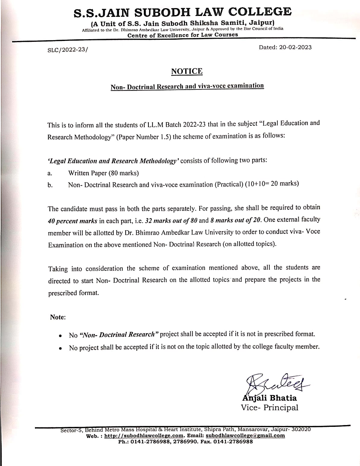 LL.M Ist Year Non-Doctrinal Research and Viva-Voce Examination 2023 Notice LL.M Ist Year Non-Doctrinal Research and Viva-Voce Examination 2023 Notice