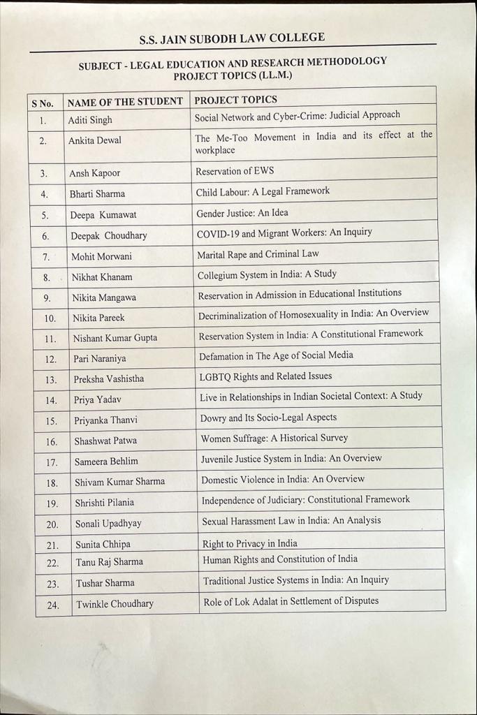 Legal Education and Research Methodology Project Topic(LL.M) Legal Education and Research Methodology Project Topic(LL.M)