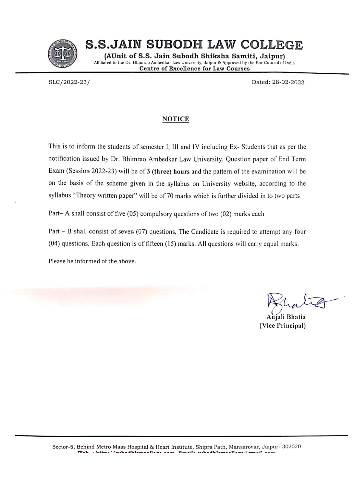 Final Exam Pattern 2023 Notice Bhimrao Ambedkar University, Jaipur Final Exam Pattern 2023 Notice Bhimrao Ambedkar University, Jaipur