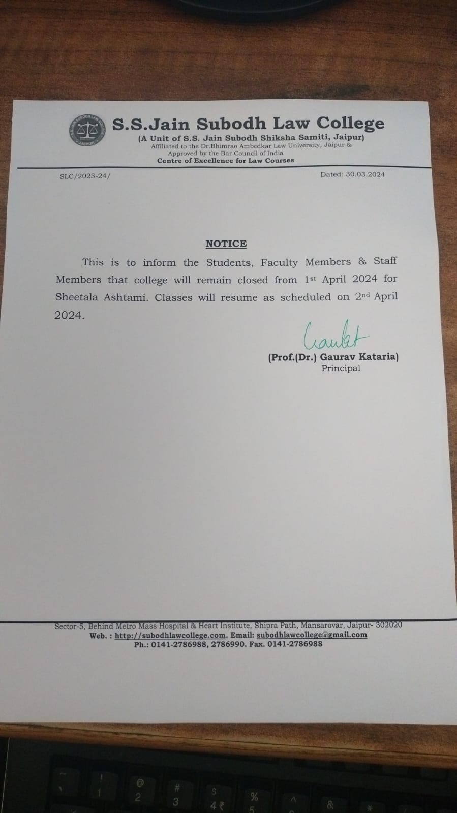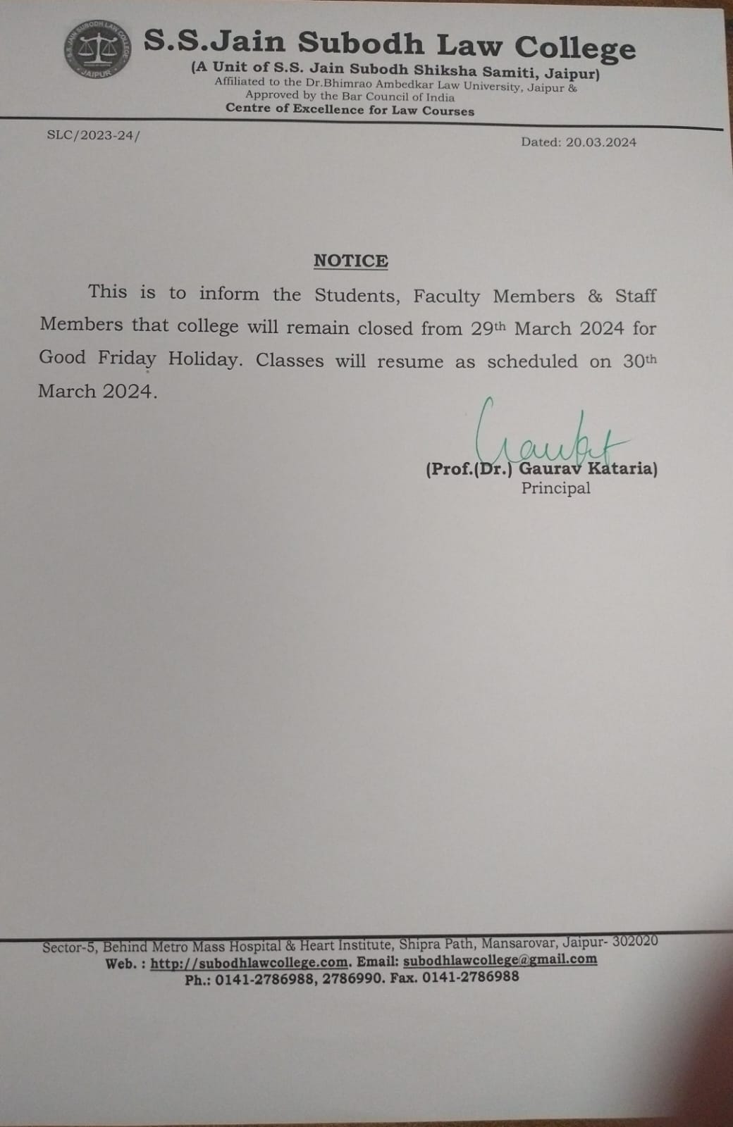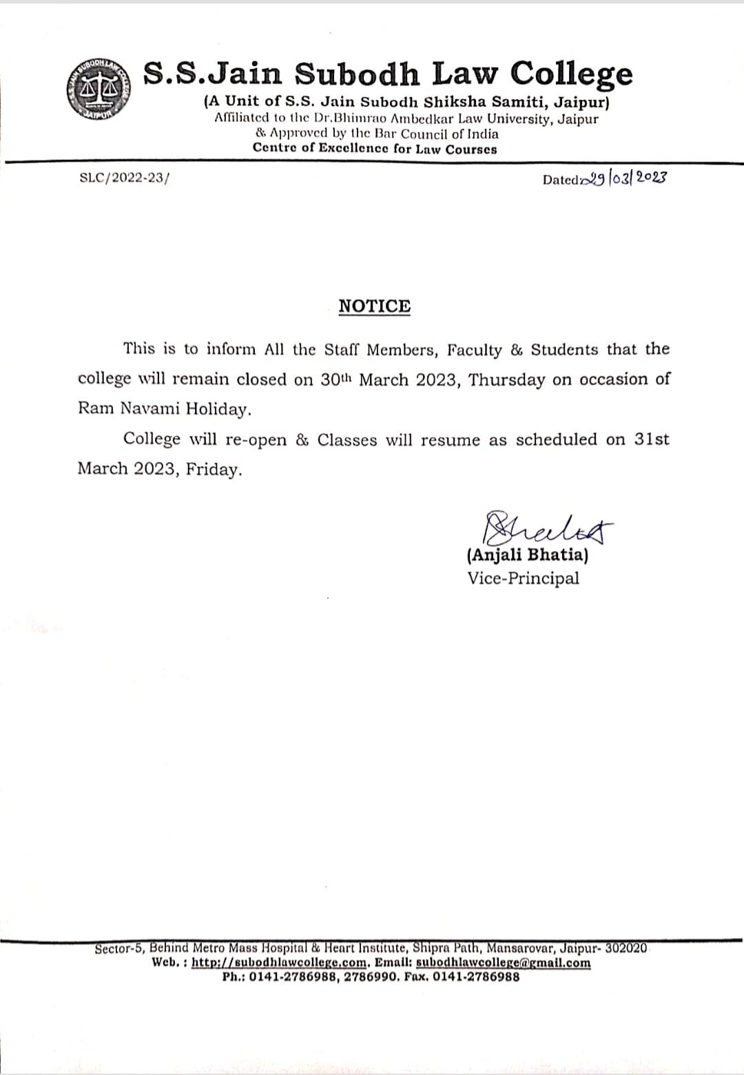 The College will remain closed on 30 March 2023, Thursday on Occasion of Ram Navami Holiday This is to inform all staff members, faculty and students that
