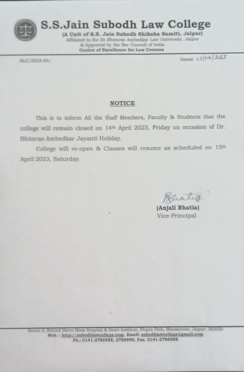 The College will remain closed on 14 April 2023, Friday on Occasion of Dr. Bhimrao Ambedkar Jayanti Holiday This is to inform all staff members, faculty and