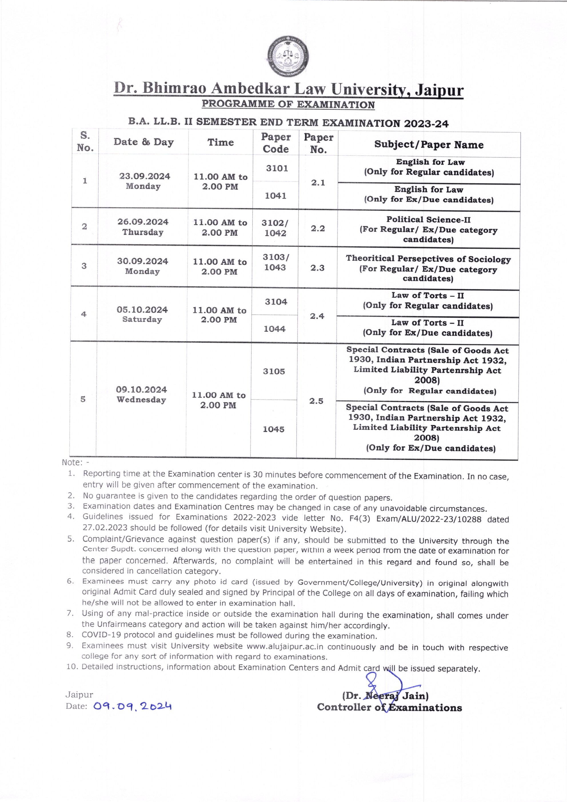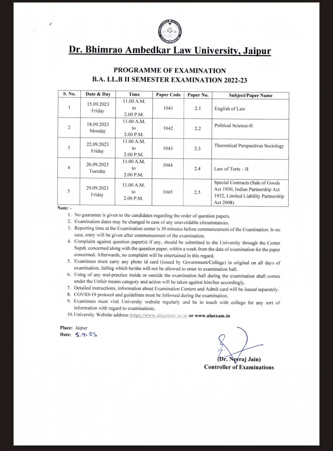 B.A.LL.B II Semester End Term Examination 2023-24 B.A.LL.B II Semester End Term Examination 2023-24