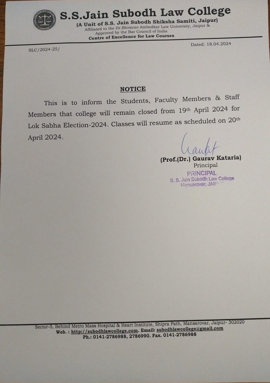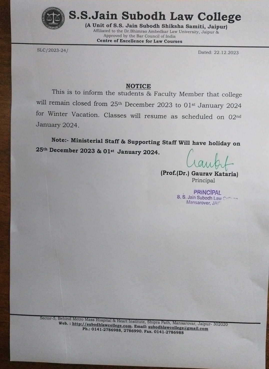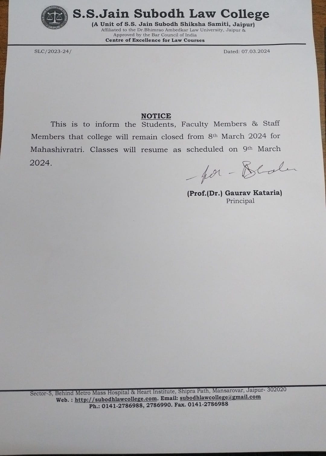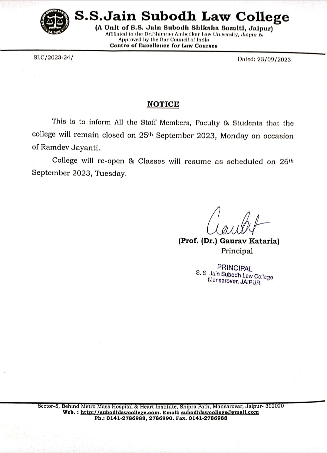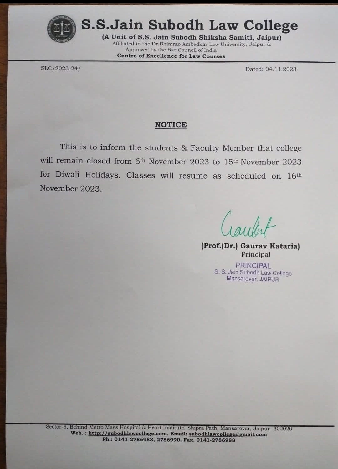 College will be remain closed on 15th November Friday on account of Guru Nanak Jayanti Holiday . College will re-open from Saturday 16 November 2024. College will be remain closed on 15th November Friday on account