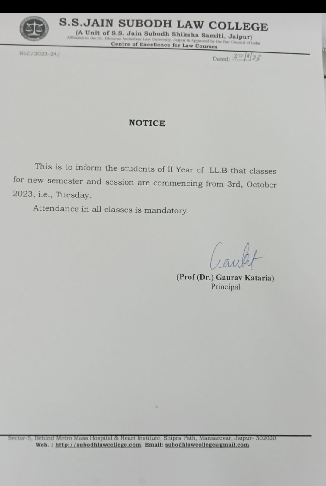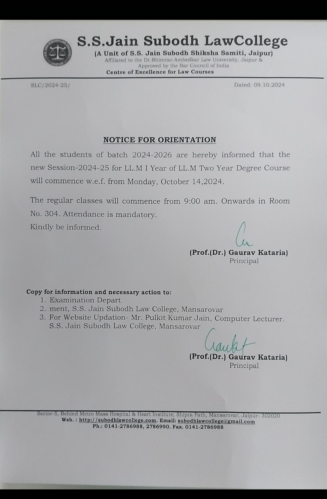 LL.M Ist Year classes Commence from Monday October 14, 2024 LL.M Ist Year classes Commence from Monday October 14, 2024
