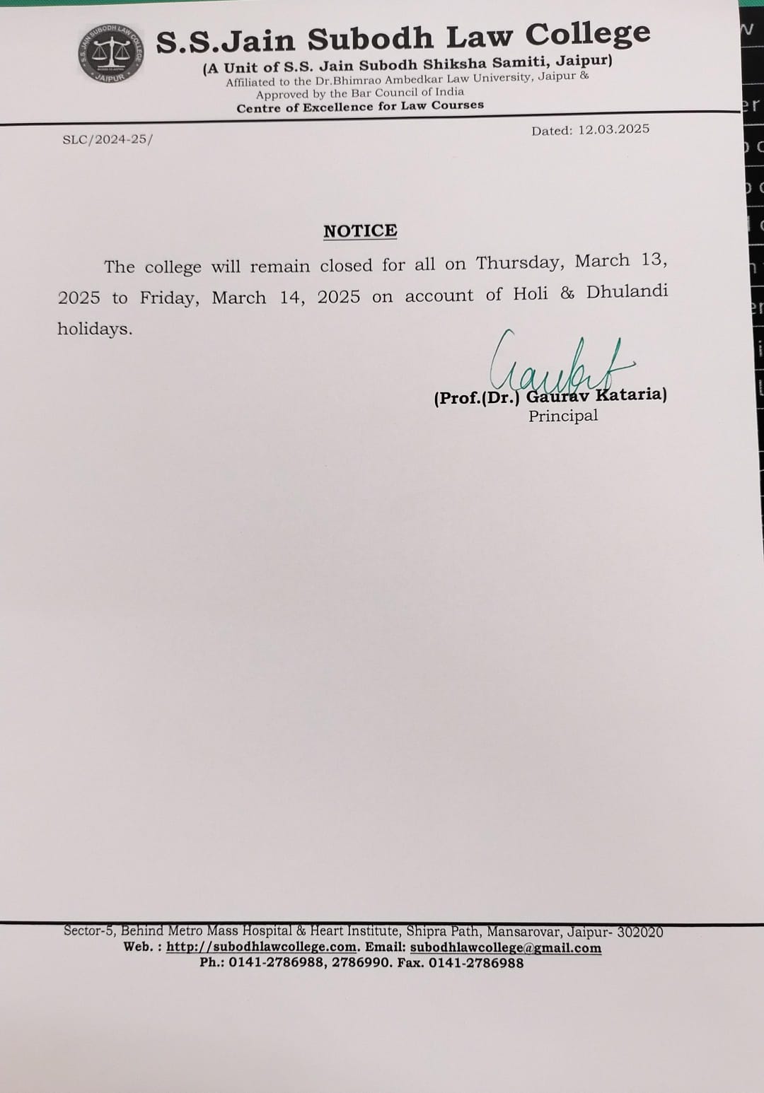 College will Remain Closed on Thursday 13 March and Friday 14 March 2025 on account of Holi Festival Holiday College will Remain Closed on Thursday 13 March and Friday 14 March 2025 on account of Holi Festival Holiday
