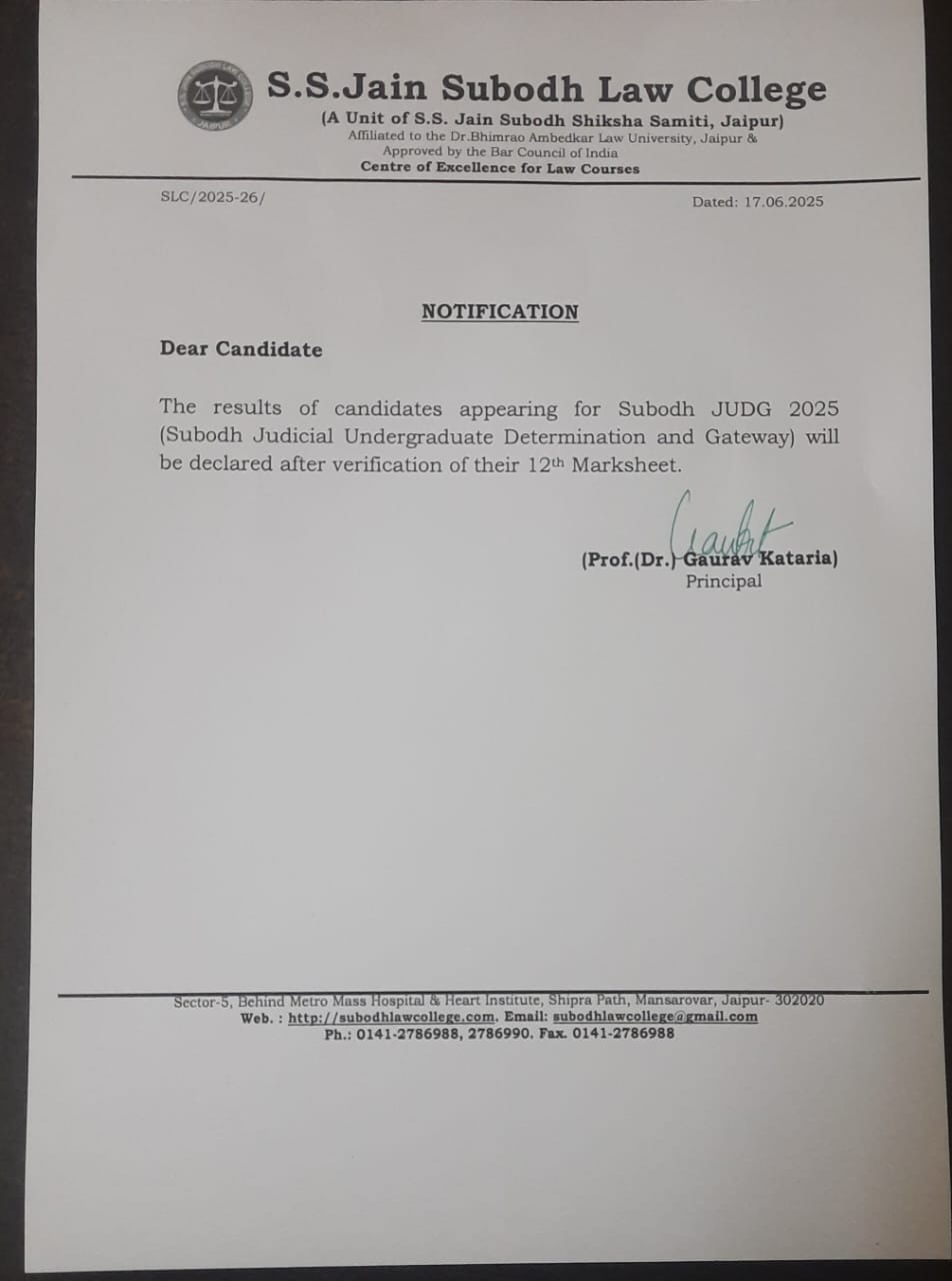 Important notice about the Result of Subodh JUDG Exam 2025 Important notice about the Result of Subodh JUDG Exam 2025 |