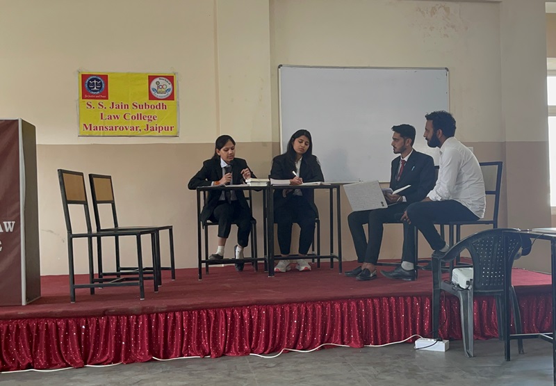 A workshop on "Mediation Process" was conducted in the Three Year Law Course, S.S. Jain Subodh Law College, on February 27, 2023. In the first part of the workshop, the students were thoroughly explained the theoretical aspects of mediation and its process, and in the second, a demo of the entire process was performed for a better understanding of the practical aspects of "how to conduct a mediation session."